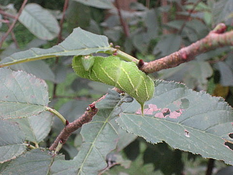 靠近去看才發現,牠正啃著我的櫻花葉,啃的不亦樂乎溜