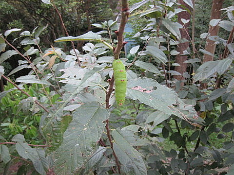 ㄟ~~~~怎麼有一片樹葉特別青綠呢大概是毛毛蟲捲好的蟲繭吧!!